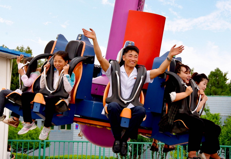 В городке аттракционов «Рынра» в Народной парковой зоне «Рынра» в столице КНДР – Пхеньяне, покрытой густой зеленью, в этот летний сезон полно горожан, которые проводят веселое время отдыха.