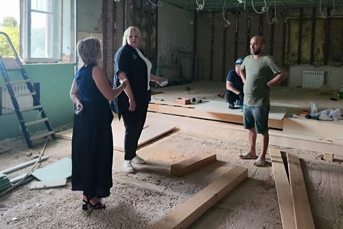 На объекте уже выполнен значительный объем работ, однако многое еще предстоит сделать. В настоящее время в помещениях проведены демонтажные работы дверей, полов, стен. Произведена замена радиаторов. Началась заливка полов, заменена электропроводка в зрительном зале и других помещениях.
