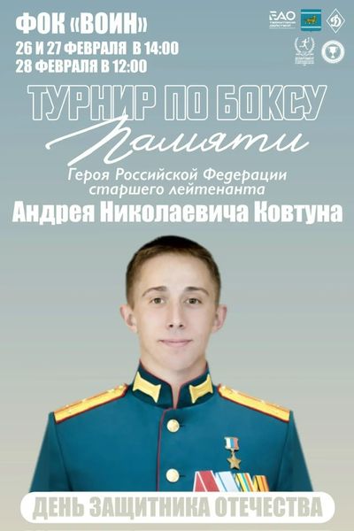 В физкультурно-оздоровительном комплексе «Воин» 26.02.2026 стартуют межрегиональные соревнования по боксу, посвященные памяти Героя Российской Федерации старшего лейтенанта Андрея Ковтуна.