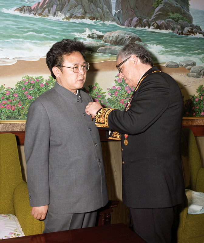 | Ким Чен Ир награжден юбилейной медалью СССР «40 лет Победы в Великой Отечественной войне 1941 – 1945 гг.». Май 1985 года. |
