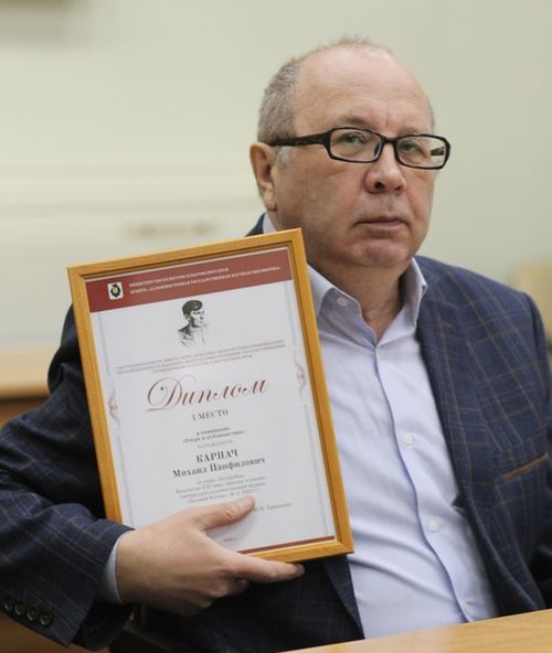 Михаил Панфилович Карпач (23.9.1954, Советская Гавань), публицист, редактор. В 1979 г. окончил журналистский факультет Дальневосточного государственного университета (Владивосток). Работал корреспондентом хабаровских газет «Молодой дальневосточник» и «Тихоокеанская звезда», редактором газет «За коммунистический труд» (Хабаровский завод отопительного оборудования), «Амурская заря» (г. Амурск), «Дальневосточный Комсомольск» (г. Комсомольск-на-Амуре), «Энергетик» («Дальневосточная генерирующая компания»), «Приамурский казачий вестник» (окружное казачье общество Хабаровского края). С 1991 по 2025 гг. работал (с перерывами) в краевой газете «Приамурские ведомости» (Хабаровск). С 2025 г. - главный редактор журнала «Дальний Восток» (Хабаровск). Член Союза журналистов СССР/России (Из: Литературный путеводитель востока России: От Чукотки до Владивостока. Писатели, поэты, литераторы, сказители, лингвисты, литературоведы - авторы произведений XIX-XXI вв. (1000 персон). Авт.-сост. Пронякин К.А.).
