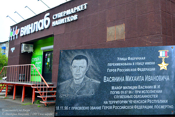 Такой вот либеральный подход администрации Комсомольска-на-Амуре к решению проблемы неуместного соседства памятной доски М.И. Васянину и вывески магазина «Вин-Лаб» на пр. Первостроителей, 21 является очень наглядной демонстрацией всей сути капитализма. Когда чьи-то коммерческие интересы ставятся выше культуры, истории, памяти, патриотизма и человеческих ценностей. Особенный цинизм и мерзость этой ситуации придаёт то, что доска принесена в жертву магазину АЛКОГОЛЬНОЙ ПРОДУКЦИИ. Которых и так в городе десятки и становится всё больше и больше. Вот так и бывает, когда в стране нет нормального хозяина, а государственную идеологию замещает «золотой телец». Представить себе подобную ситуацию при социализме было невозможно.