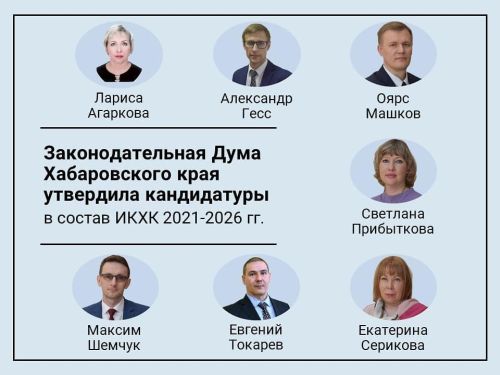 31 марта 2021 года Законодательная дума Хабаровского края назначила в Избирательную комиссию Хабаровского края состава 2021-2026 гг. семь членов с правом решающего голоса. Ими стали: