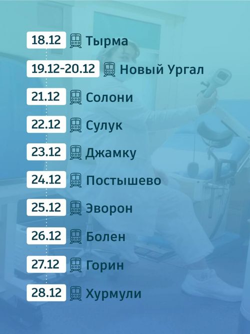 Напомним, что передвижной консультативно-диагностический центр на базе поезда «Святой Пантелеймон» запущен в августе 2024 года. Он предназначен для медицинского обследования жителей труднодоступных и отдаленных населенных пунктов, где отсутствуют врачебные амбулатории и клинико-диагностические лаборатории. В состав поезда входят 14 вагонов: функциональной диагностики, лучевой диагностики, лабораторный, хирургический, ординаторский, вагон-регистратура с аптечным киоском и другие.