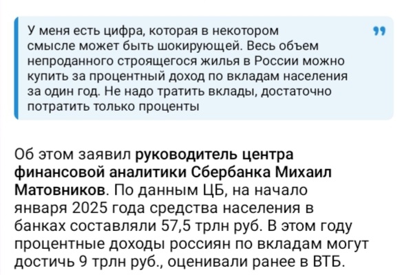 Тот самый "финансовый навес", не обеспеченных товарной массой денег, образовавшихся в основном за 3 года расходов на СВО и при перегруппировке внутренних  инвестиционных рынков.