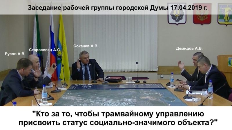 Чиновники администрации города, видимо, были настолько уверены в правильности своей позиции, выставляя 15 апреля 2019 г. на продажу имущество трамвайного управления, что не стали дожидаться решения рабочей группы городской Думы о судьбе этого предприятия, заседание которой состоялось 17 апреля. И ведь администрация знала о том, что заседание назначено на этот день. А рабочая группа приняла решение ПРИЗНАТЬ трамвайное управление СОЦИАЛЬНО-ЗНАЧИМЫМ объектом. Этот статус не позволяет продавать его имущество по частям, а только целым комплексом. А это гарантия сохранения предприятия.