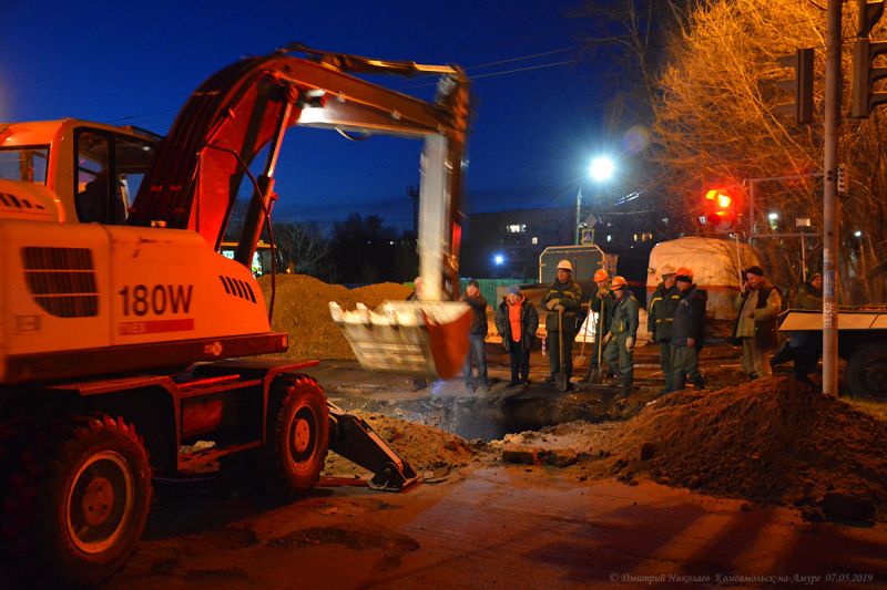Ровно в 21:00 дорога была перекрыта и экскаватор начал копать дорогу. Суть работ заключалась в замене старых труб под дорогой между двумя коллекторами, разнесёнными по обе стороны от трамвайных рельс. Задача тепловиков сводилась к тому, чтобы подсоединить новые трубы к коллекторам, аккуратно просунув их под рельсами. Вскоре подоспели и ещё два наших товарища. Остальные были на связи и также были готовы, в случае чего, сразу подъехать на место.