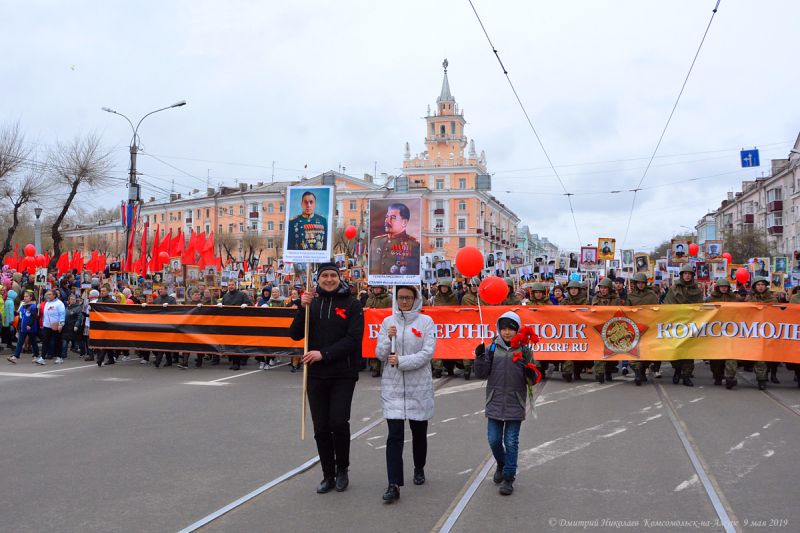 Недавно весь Комсомольск-на-Амуре в очередной раз отметил масштабным Парадом День Победы в Великой Отечественной войне. Разумеется, в Параде участвовало и томское «изобретение» последних лет – «Бессмертный полк», в котором родственники погибших на фронте защитников Родины обычно несут их портреты.