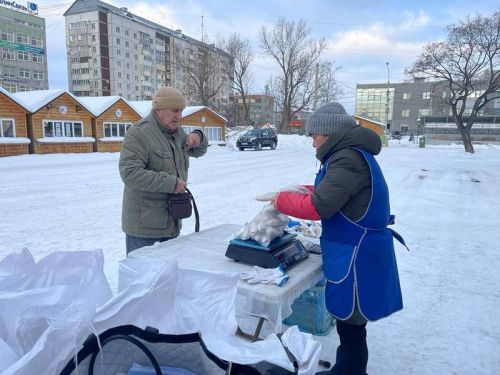 Продажи зимней рыбы стартовали также в Поронайске. Промысловики рыболовецкого колхоза «Дружба» добыли 30 тонн рыбы, которая была заморожена естественным способом и уже поступила на прилавки торговых объектов. Цена за килограмм свежемороженой наваги составляет 80 рублей за килограмм.