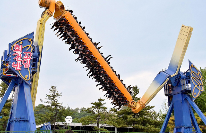 В городке аттракционов «Рынра» в Народной парковой зоне «Рынра» в столице КНДР – Пхеньяне, покрытой густой зеленью, в этот летний сезон полно горожан, которые проводят веселое время отдыха.