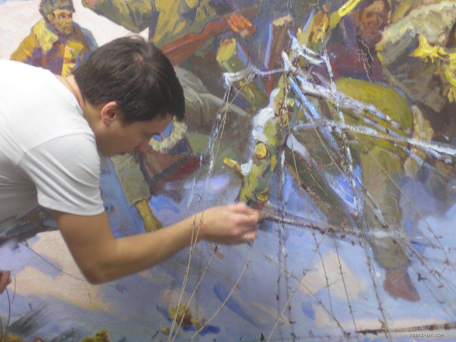 Из-за отсутствия реставраторов соответствующей категории на Дальнем Востоке, сотрудники музея обратились к московским реставраторам из «ВХНРЦ им. академика Грабаря» и «Студии военных художников имени Грекова».