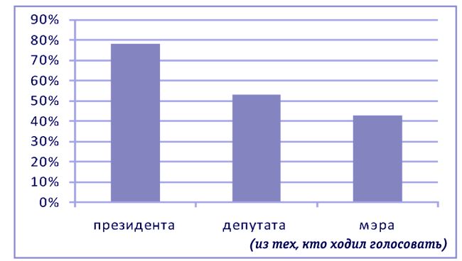Каждый третий опрошенный не ходит на выборы, а из тех, кто ходит, только 50 процентов воспользовались правом избрать себе мэра, но при этом абсолютное большинство считает, что градоначальника должен выбирать народ.