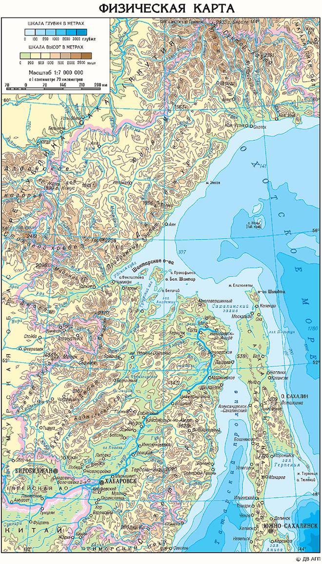 Хабаровский край лежит в умеренном поясе северного полушария, простираясь с юга на север на 1780 км, с запада на восток – на 125-750 км. Граничит с Китаем, соседствует с Приморским краем, Амурской и Магаданской областями, Еврейской автономной областью, Республикой Саха (Якутия). Край с востока омывается Охотским и Японским морями, проливами Татарским и Невельского отделяется от о. Сахалин, протяженность его береговой линии составляет 2,5 тыс.км.