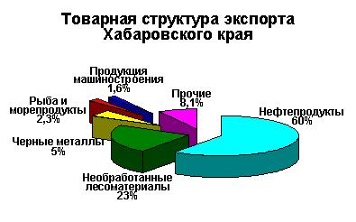 Последний важный фактор развития края – это внешний спрос. Спрос на продукцию предприятий края складывается из трех частей: внутренний региональный рынок, межрегиональный внутрироссийский рынок и внешний рынок. Внутренний рынок Хабаровского края не в состоянии обеспечить необходимый спрос не только по большинству продуктов промышленного производства, но и для отраслей, производящих услуги. Поэтому инновационное развитие экономики края возможно только при наличии продукции, конкурентоспособной и на внутрироссийском рынке, включая и Европейскую часть страны, и на внешнем рынке стран СВА и АТР. В настоящее время в структуре экспорта края значительную долю оставляют сырьевые продукты или продукты первичной переработки, которые являются конкурентоспособными на внешнем рынке. Для продуктов глубокой переработки (деревопереработка, нефтепереработка, черная металлургия, машиностроение) необходим рынок сбыта и внутри страны и за ее пределами.