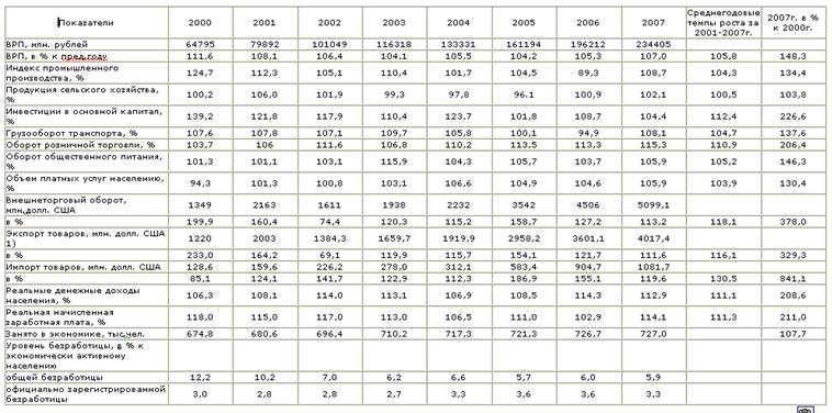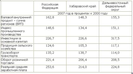 Основные показатели социально-экономического развития Хабаровского края за 2000 – 2007 годы приведены в таблице 2.