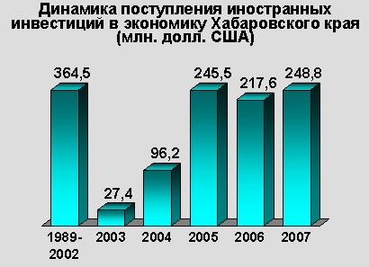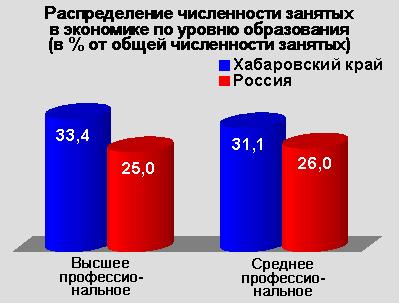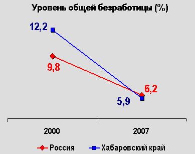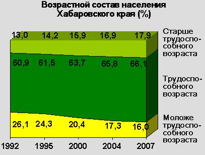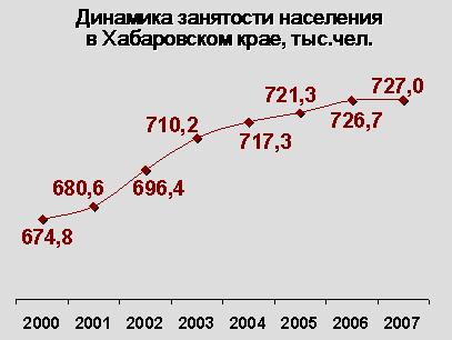 Трудовые ресурсы. За период 2000-2007 годы численность трудовых ресурсов в Хабаровском крае увеличилась на 2,7 процента за счет увеличения лиц старше трудоспособного возраста, занятых в экономике, на 19,5%, роста численности иностранных работников в 5,9 раза. При этом численность населения в трудоспособном возрасте сократилась за указанный период на 0,5 процента.