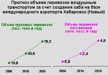 Развитие Хабаровского территориально-производственного комплекса планируется как формирование единого транспортно-логистического узла, промышленного и делового центра с развитой инфраструктурой услуг, среди которых большое значение будут иметь услуги образования, туризма, коммерциализации научных разработок. На базе международного аэропорта Хабаровск (Новый) планируется создание авиационного транспортного узла (хаба) с развитием пассажирских и грузовых терминалов, отвечающих международным нормам.