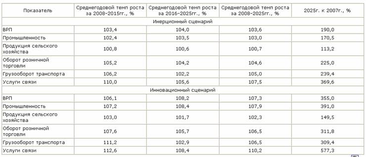 Реализация инновационного сценария связана с приоритетными направлениями, которые учитывались при прогнозе и нашли свое отражение в макропоказателях.