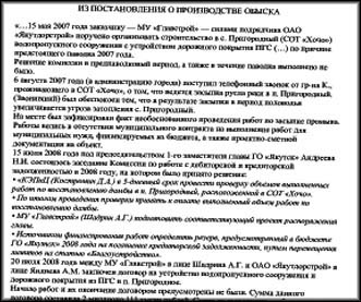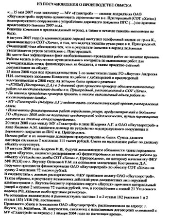 Старшим следователем СУ при УВД по г. Якутску было принято решение о возбуждении уголовного дела по ч. 4 ст. 159 («Мошенничество в особо крупном размере»). Обвинение никому еще предъявлено не было. О том, кто является подозреваемым, кого приглашали на допросы и где проводилась выемка документов, я ничего говорить не буду, так как эта информация является тайной предварительного следствия. Единственное, что я бы вам посоветовал, так это никого не обвинять. Напомню: человек может быть признан виновным только после того, как вынесенный ему судом приговор вступит в законную силу. Сейчас же просто отрабатываются версии следствия.