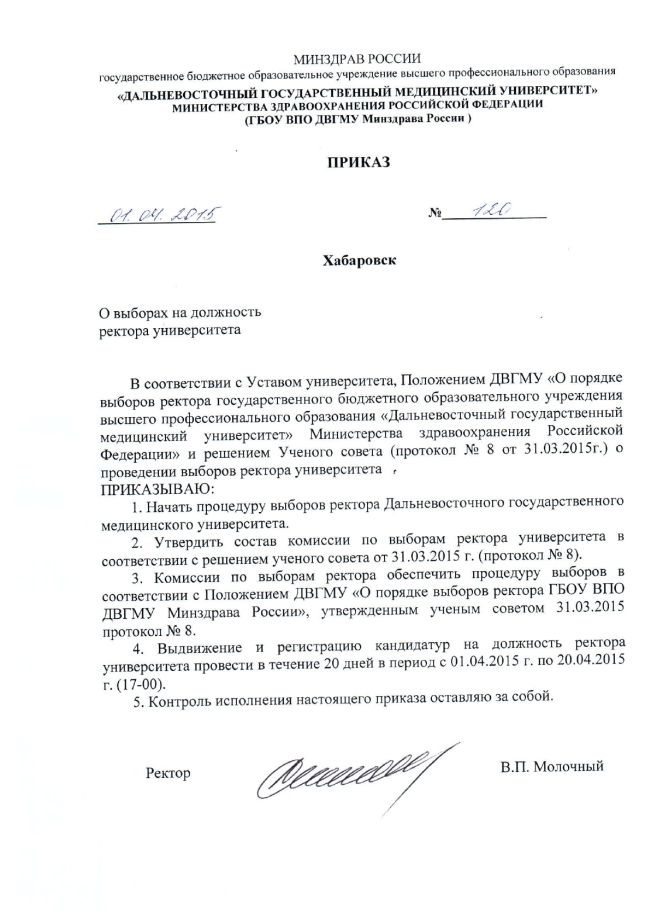 Повторные выборы ректора ДВГМУ запланированы на будущий год. Ориентировочно они пройдут в первой половине 2016 года.
