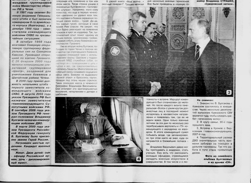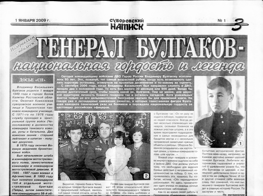 С сентября 2006 года, когда Владимир Васильевич был направлен служить в ДФО, прошло два с половиной года. То есть без малого 30 месяцев или 900 дней. Вроде бы вполне достаточный срок, чтобы понять какой он, Булгаков. Тем не менее, для широкой аудитории личность боевого генерала так и осталась загадкой. Хотя уникальных фактов только из его дальневосточной биографии хватило бы для приличной книги. Не говоря уже о легендарных кавказских сюжетах, в которых таинственная фигура Булгакова наводила панический ужас на боевиков и порождала национальную гордость за наших настоящих российских офицеров.