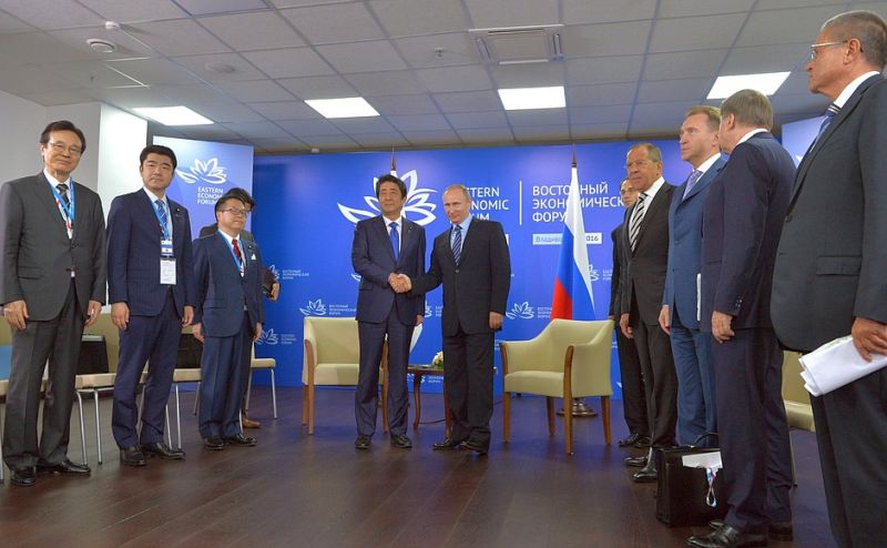 | Владимир Путин с премьер-министром Японии Синдзо Абэ. |