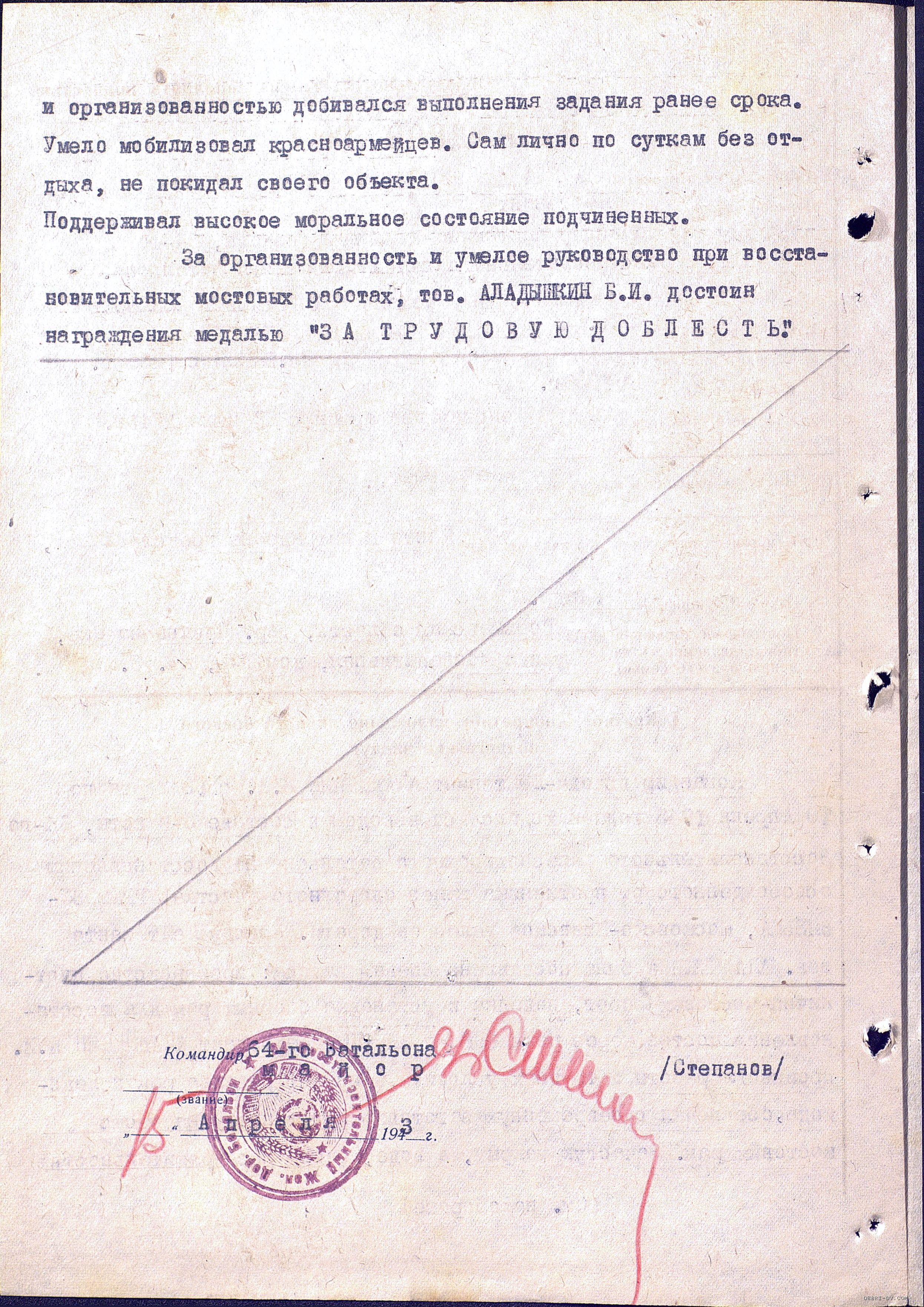 | Наградной лист на Аладышкина Бориса Ильича (оборот) |