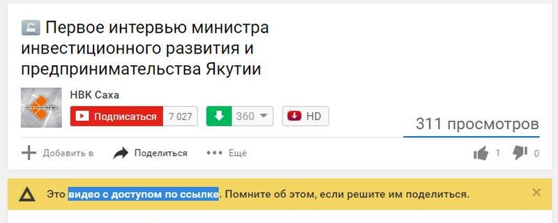 На видеохостинге Ютуб телекомпания «НВК Саха» ограничила доступ к первому интервью министра инвестиционного развития и предпринимательства Республики Саха (Якутия) Антона Сафронова.