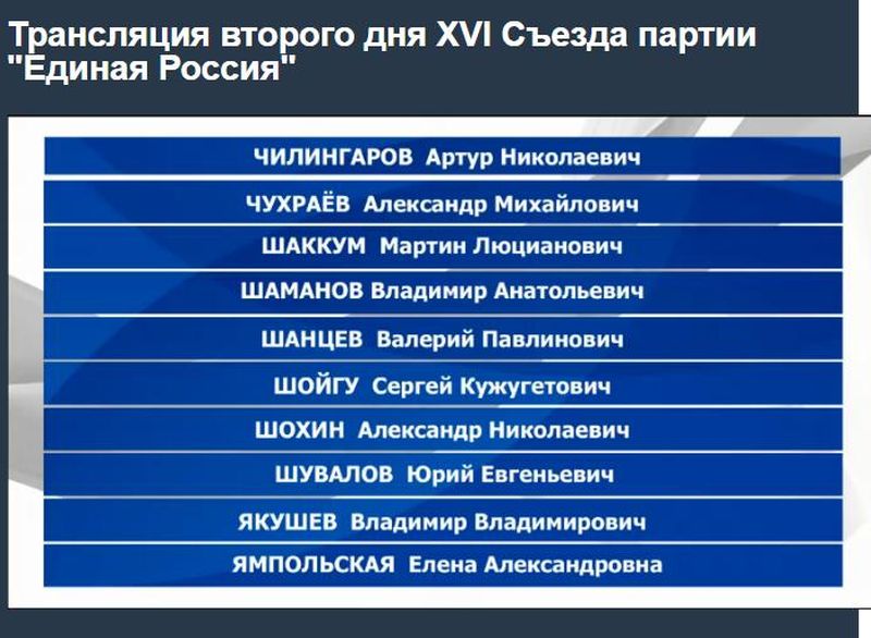 | Данные по высшему совету «Единой России» |