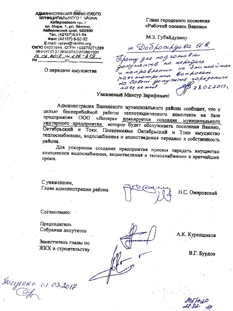 Ни у кого даже не возникло сомнений: правомерна ли такая процедура и как она по закону должна проходить? Хотя начальник отдела имущественных отношений администрации поселка Ванино высказала свои сомнения о такой передаче имущества ЖКХ поселения в район...