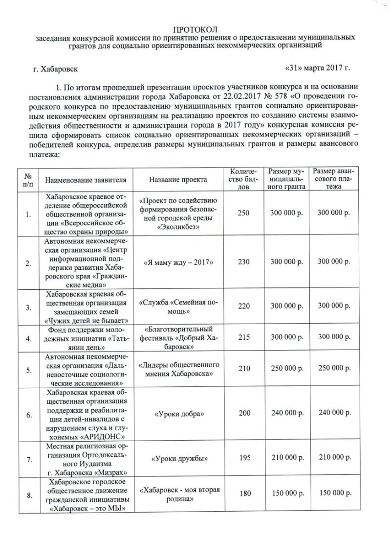 Ранее, 31 марта, в Хабаровском городском ресурсном центре НКО состоялось очная защита проектов конкурса муниципальных грантов. В преддверии этого мероприятия 34 социально-ориентированные некоммерческие организации подали свои заявки на участие в конкурсе.