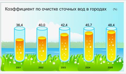 Суточная утилизация отработанных вод в городах за год составляет 80,91 млн. куб. м, на 9,5% больше против 2004 года; 48,4% загрязненных вод в городе утилизируются, на 1,2% больше; отопляемая центральной системой площадь насчитывала 2,2 млрд. кв. м, на 3,2% больше. Озеленено 33,0% построенных районов, на 1,4% больше против предыдущего года.