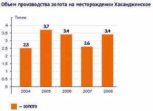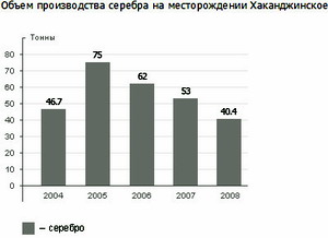 За шесть лет на Хаканджинском месторождении компанией добыто 18 т рудного золота (в среднем – около 3 т в год) и 616 т серебра (в среднем – около 103 т в год), а за первое полугодие нынешнего года – пока лишь 800 кг золота и 24,8 т серебра. Причем здесь нет, как все думают, отдельно золота и серебра. На Хакандже руда относится к золотосеребряной формации, и в руде содержится одновременно оба драгметалла. Меньше-больше драгметаллов — вот и вся разница.