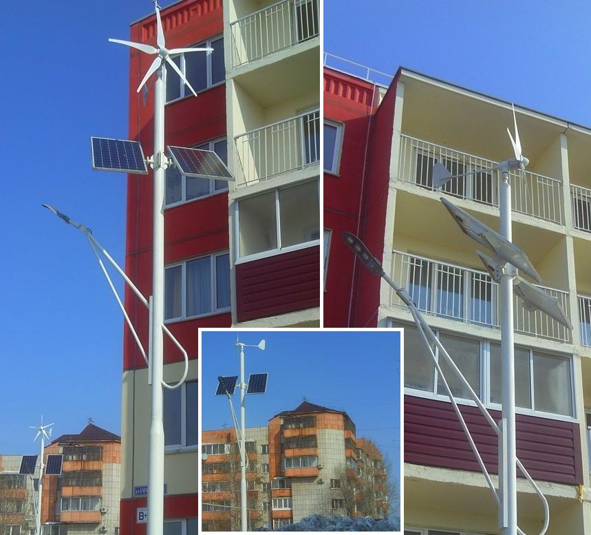 Затем я услышал жужжание вдали, прошел за дом, - а сзади него еще один такой же новый жилой комплекс с похожим уличным фонарем, снабженным аналогичной ветроэлектростанцией!