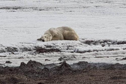 Напомним, что с воскресенья молодой белый медведь, вероятно, попавший из Берингова пролива на берег залива Корфа на льдине, живет на окраине поселка Тиличики.