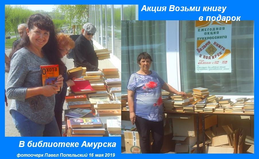 15 мая в центральной районной библиотеке Амурска прошла традиционная акция Возьми книгу в подарок - на ней жители города могли бесплатно взять себе литературу и периодику насовсем домой на расставленных вдоль библиотеки по проспекту Комсомольскому столах.
