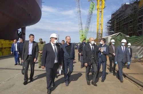 На верфи его сопровождали вице-премьер - полпред президента РФ в Дальневосточном федеральном округе Юрий Трутнев и глава Приморья Олег Кожемяко. Пояснения давали гендиректор предприятия Сергей Целуйко и вице- президент «Роснефти» Константин Лаптев.