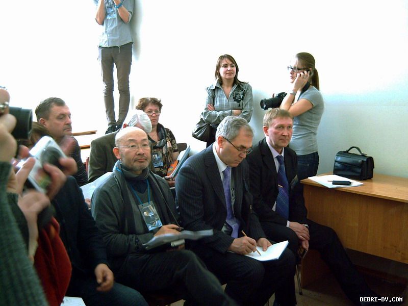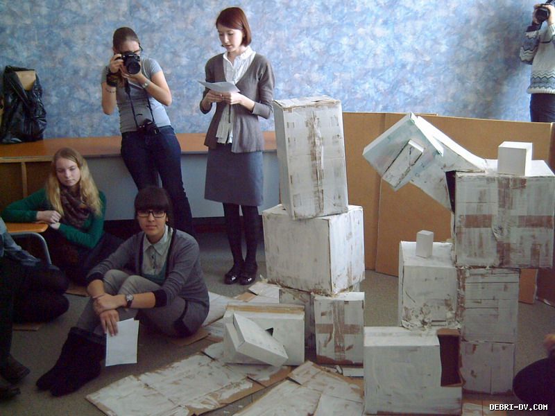 В отличие от наших студентов, японцы, к примеру, приводят на форум реальные проекты, вплоть до конструкции стула. В Хабаровск они даже привезли образец! Комфортный стул. Знаете, из чего он сделан? Из железобетона. И доказывали, что это мебель будущего, которая не имеет срока годности, не бьется, не царапается, не ломается. Стул этот не холодный – он со специальным покрытием.  | | Башня, каждый этаж которой напоминает стоящих по кругу человечков в ТОГУ. Нажмите, чтобы УВЕЛИЧИТЬ | (function(w, d, n, s, t) { w[n] = w[n] || []; w[n].push(function() { Ya.Context.AdvManager.render({ blockId: "R-A-127969-6", renderTo: "yandex_rtb_R-A-127969-6", async: true }); }); t = d.getElementsByTagName("script")[0]; s = d.createElement("script"); s.type = "text/javascript"; s.src = "//an.yandex.ru/system/context.js"; s.async = true; t.parentNode.insertBefore(s, t); })(this, this.document, "yandexContextAsyncCallbacks"); |  | | Жюри международного воркшопа в ТОГУ. Нажмите, чтобы УВЕЛИЧИТЬ | (function(w, d, n, s, t) { w[n] = w[n] || []; w[n].push(function() { Ya.Context.AdvManager.render({ blockId: "R-A-127969-6", renderTo: "yandex_rtb_R-A-127969-6", async: true }); }); t = d.getElementsByTagName("script")[0]; s = d.createElement("script"); s.type = "text/javascript"; s.src = "//an.yandex.ru/system/context.js"; s.async = true; t.parentNode.insertBefore(s, t); })(this, this.document, "yandexContextAsyncCallbacks"); |