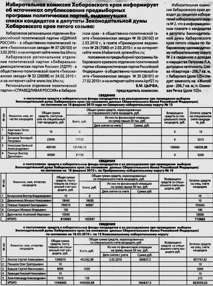 избирательного объединения «Хабаровское региональное отделение политической партии ЛДПР, принимающего участие в выборах депутатов Законодательной думы Хабаровского края пятого созыва 14 марта 2010 года[/b]