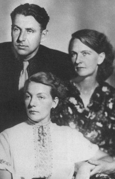 | Зоя Васильевна Блюхер (сидит), Всеволод Васильевич Блюхер и Глафира Лукинична Безверхова-Блюхер (стоят). 1956 г. |