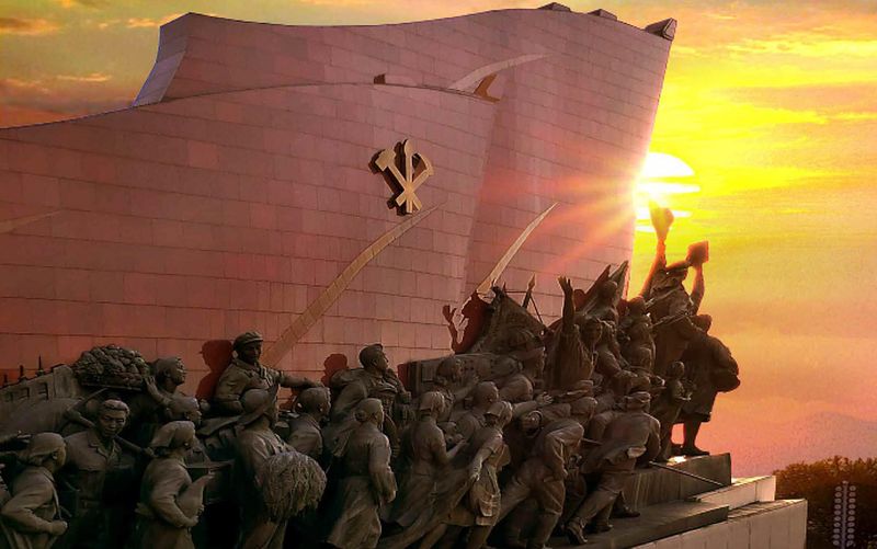 | Скульптурная группа показывает незыблемую волю корейского народа – идти к лучезарному будущему под руководством Трудовой партии Кореи. |