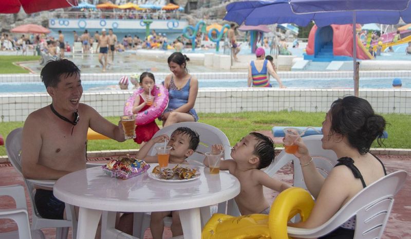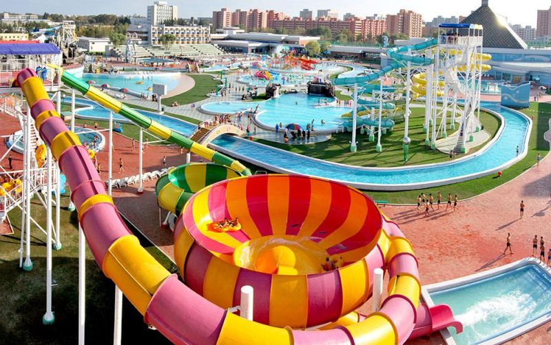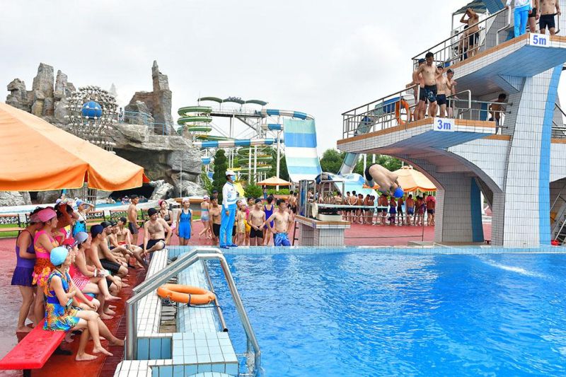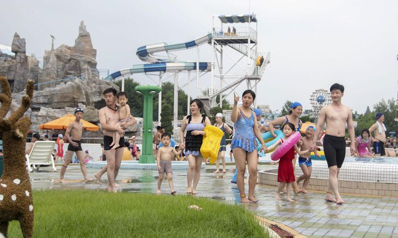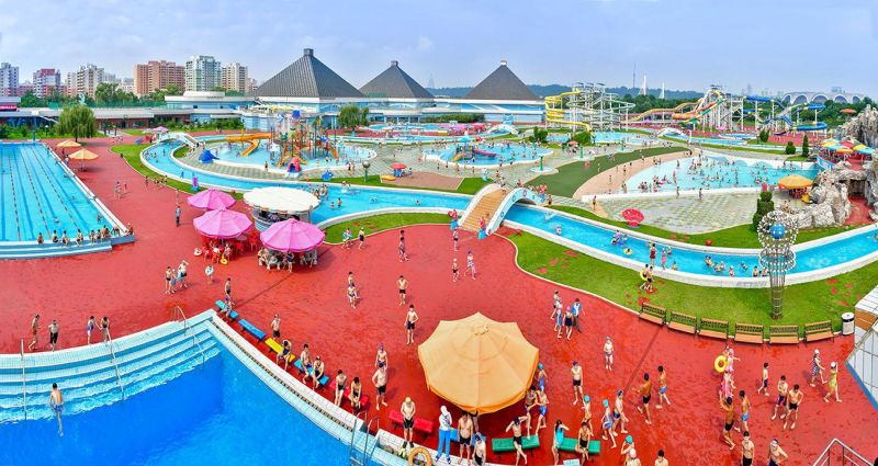Мунсуский аквапарк в столице КНДР Пхеньяне, можно сказать, «водяной рай». На открытом участке аквапарка с разными водяными горками и бассейнами созданы все условия для тех, кто проводит веселое время отдыха в воде.