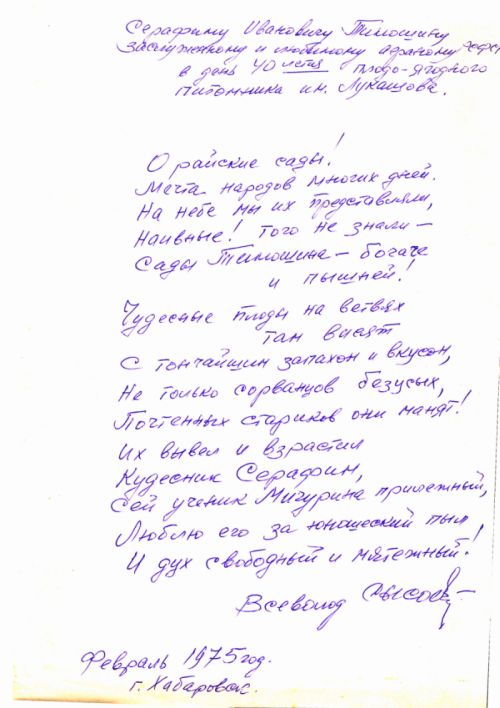 в день 40-летия плодо-ягодного питомника им. Лукашова.