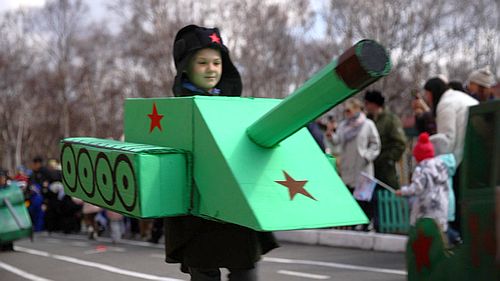 Праздничное мероприятие «Парад Победы» прошел в восьмой раз в елизовском детском саду «Сказка». Воспитанники дошкольного учреждения исполнили военные песни, стихи, прошли строем и представили самодельные танки, корабли и самолеты на импровизированном параде военной техники.