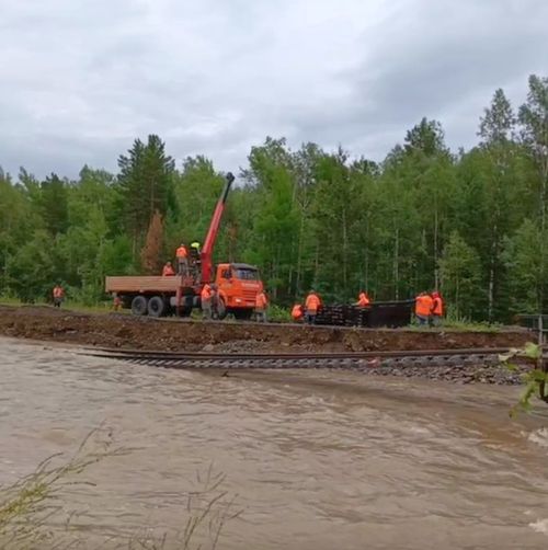 Железнодорожники стараются как можно скорее остановить размыв насыпи на участке Нижнеангарск - Холодная на БАМе.