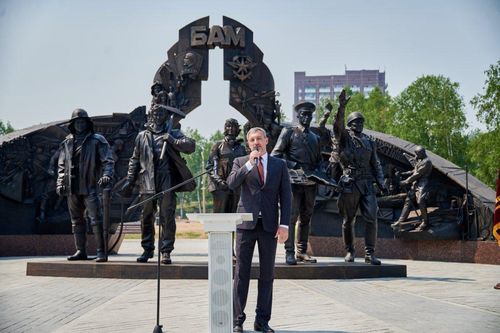 «Президентом нашей страны Владимиром Владимировичем Путиным поставлена очень серьезная задача по развитию Восточного полигона железных дорог. Будут построены БАМ-2 и БАМ-3. Впереди у магистрали большие перспективы. Уверен, что современные строители когда-нибудь встанут в ряд с легендами БАМа, образы которых запечатлены на памятнике. Колоссальная масштабная стройка, которую вела вся наша великая многонациональная страна, дала импульс для развития всего Дальнего Востока и Сибири. Совместно с Российскими железными дорогами сделаем все возможное, чтобы выполнить поручение Президента по дальнейшему развитию магистрали», - сказал Губернатор Амурской области Василий Орлов.