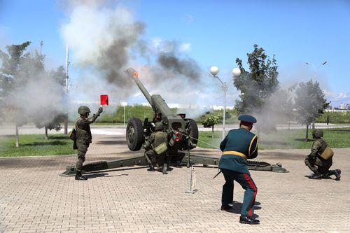 Полуденный выстрел произвел временно исполняющий обязанности командующего войсками Восточного военного округа генерал-лейтенант Михаил Носулев из 122-мм гаубицы Д-30.