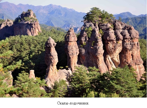 Горы Чхильбо, являющиеся одной из знаменитых гор КНДР, образуют необычный пейзаж из-за причудливых скал и утесов.