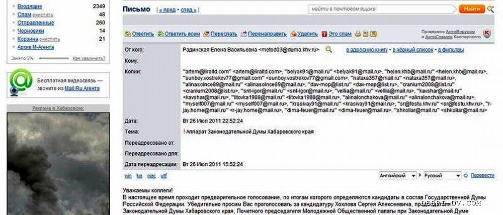 Как сообщили редакции, на личные электронные адреса членам Молодежной общественной палаты при Законодательной думе Хабаровского края пришли странные письма, с просьбой поддержать на праймериз спикера Сергея Хохлова.