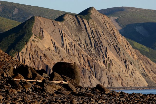 Следующие три недели ни людей, ни даже следов присутствия человека. Только на километрового масштаба картах, появившихся в интернете совсем недавно, стало видно, что восточный берег, с подступающими к самой кромке воды 300-метровыми скальными стенками, проходим. Я всё же не верил, но это же подтвердил и расспрошенный нами в Манилах коряк Николай Кыткин. «Два обхода, - рассказал ходок, избороздивший просторы Корякии в одиночку и в самом деле вдоль и поперек, иногда по 50 км в день, - а после Рекиник уже только по берегу». И верно: обходили только два участка: массив горы Мамет и выдающийся полуостровом мыс Угольный. Всё, остальной берег легко преодолим (в отлив), правда, добавим - на некоторых участках в не штормовую погоду.
